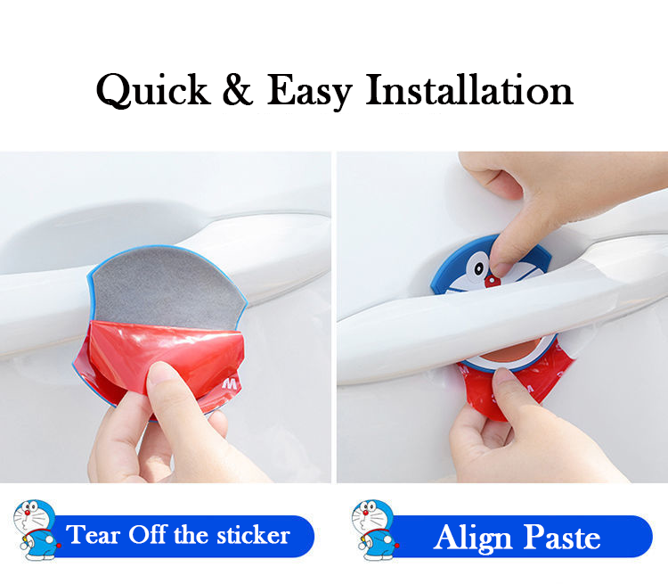 - Easy to Install: 1. Clean the car door handle cup and let it dry; 2. Tear off the protector film from adhesive backing; 3. Stick film onto the cup and adjust the perfect position Notice!!!: Adhesive back. Please clean the correlated positions before installation, and make sure NO grease/dust/water. And press hard for 30 seconds. Tips: Avoid water in 24 hours, in case car door guards fall off.