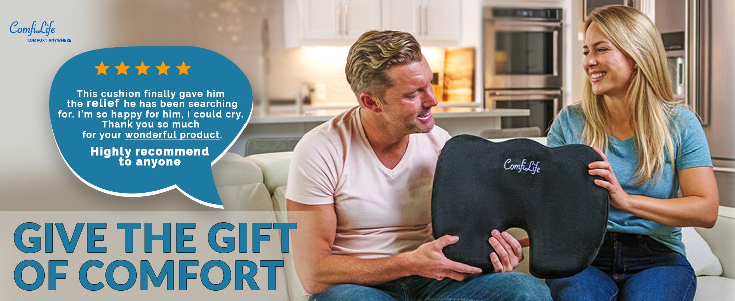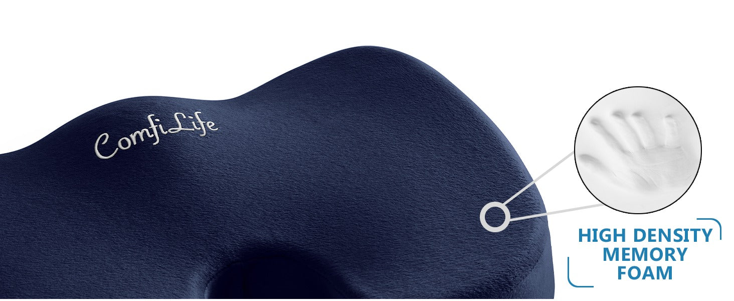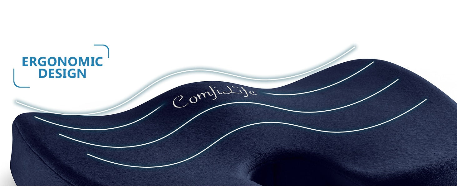 ComfiLife Gel Enhanced Seat Cushion - Non-Slip Orthopedic Gel & Memory Foam Coccyx Cushion for Tailbone Pain - Office Chair Car Seat Cushion - Sciatica & Back Pain Relief 【Black & Grey & Navy Blue】