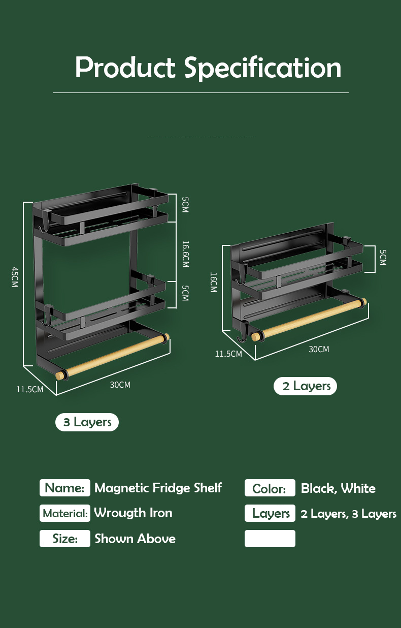Magnetic Fridge Organizer, Magnetic Spice Rack for Refrigerator Magnetic Paper Towel Holder Magnetic Shelf Fridge Magnet Organizer Spice Rack Organizer Kitchen Organization Kitchen Storage Black
