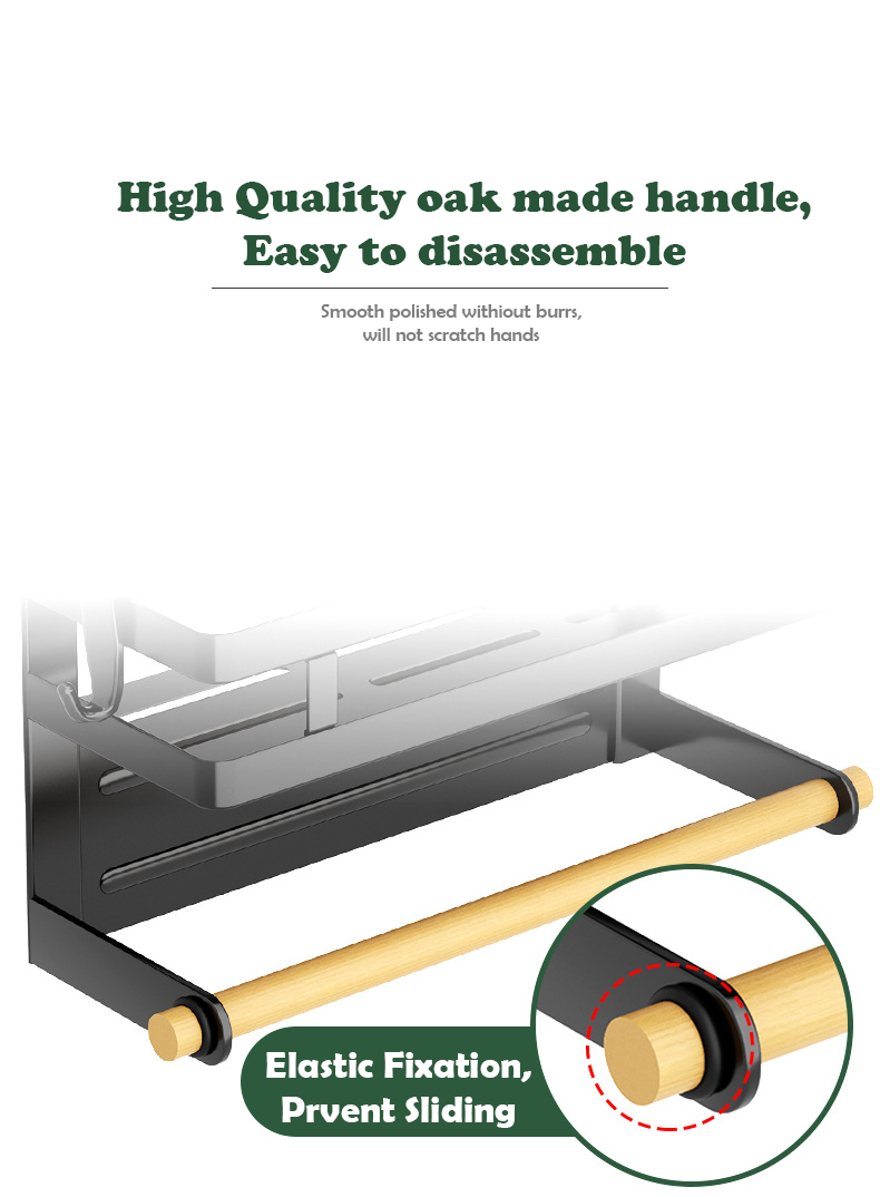 - ✅【MULTIUSE STORAGE SHELF】: This Magnetic Paper Towel Holder comes with 1 Removable wood rod and 2 movable hooks, making it perfect for hanging paper towel rolls, dishcloths, plastic wraps, trash bags, scissors, bottle-openers, oven mitts, and other lightweight items.