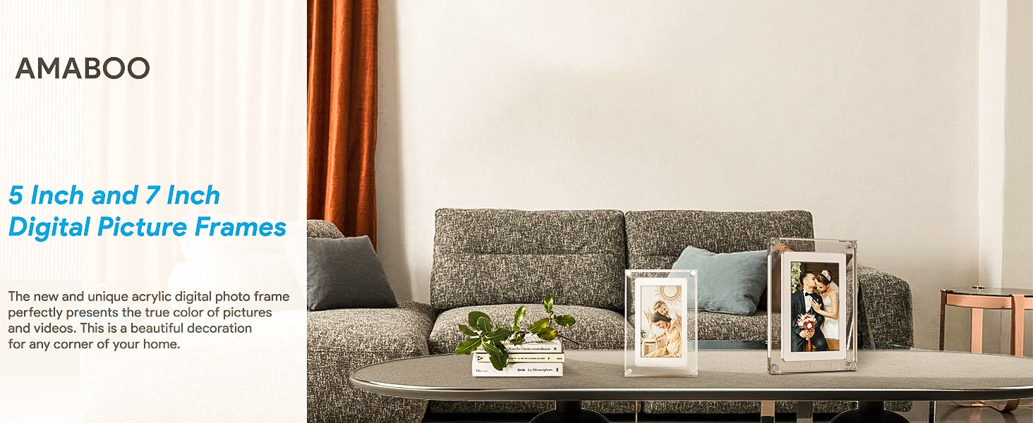 Amaboo Acrylic Digital Picture Frame, Newest Transparent Photo Frame Design Digital Photo Frame-IPS HD Screen 16GB Memory Auto Rotation Photo/Music/Video Playback 【5" & 7" & 10.1" inch WiFi Frameo】